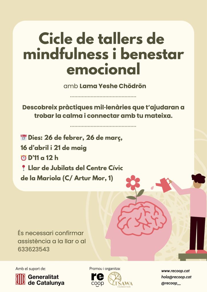 La Fundació Tsawa, en col·laboració amb Recoop, ha organitzat un cicle de tallers de mindfulness i benestar emocional que tindran lloc a la Llar de Jubilats del Centre Cívic de la Mariola (Lleida).