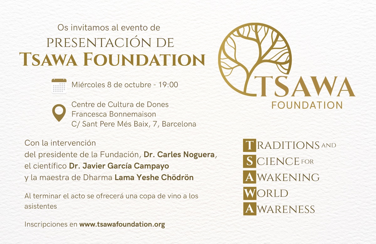Con la intervención del presidente de la Fundación, Dr. Carles Noguera, el científico Dr. Javier García Campayo y la maestra de Dharma Lama Yeshe Chödrön